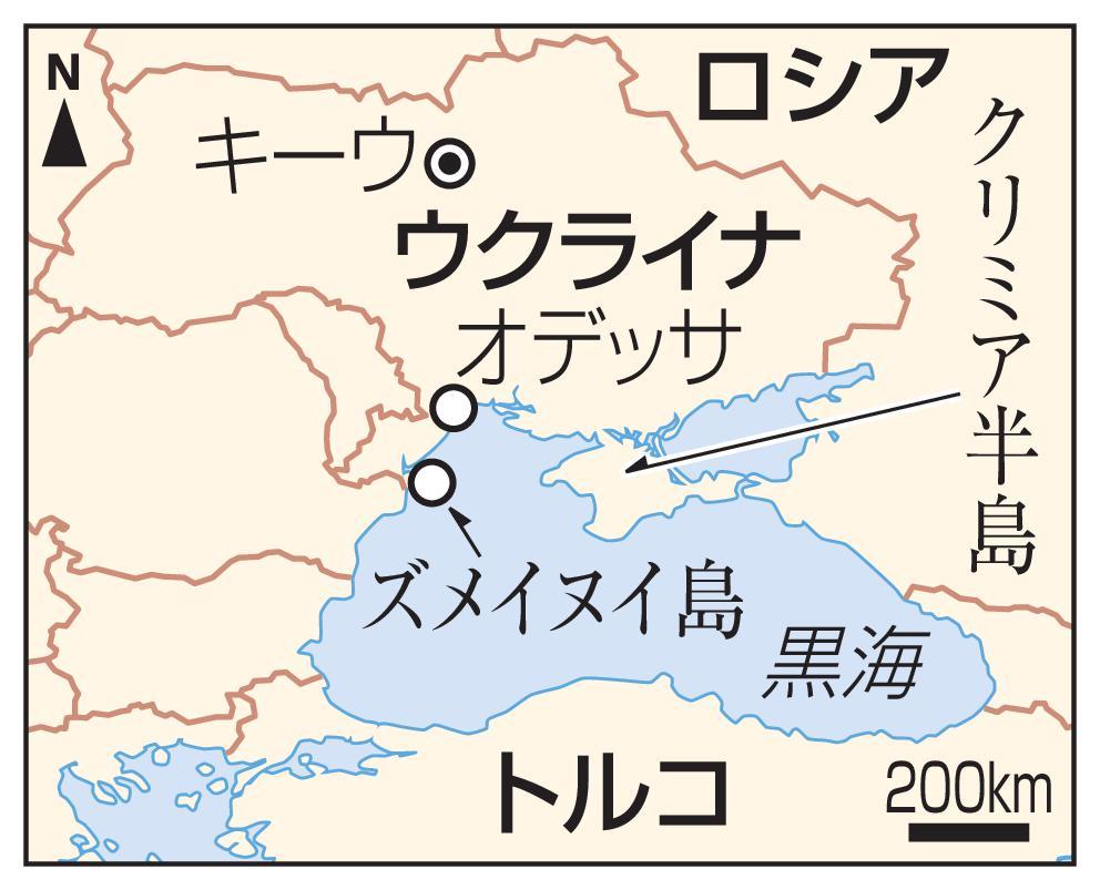 ウクライナ南部オデッサ沖の黒海西部に浮かぶ面積0・17平方キロメートルの小島。ルーマニア・スリナからは約40キロ。14世紀にジェノバの船乗りが島で大量の爬虫(はちゅう)類を見つけたことに由来して英語名は「スネークアイランド(蛇島)」。19世紀からルーマニアが領有したが第2次世界大戦中にソ連が占領。ソ連崩壊後はウクライナの所有になっていた。しかし周辺海域で海底ガス田が見つかったことからウクライナとルーマニアの間で領海線画定を巡る争いとなり、国際司法裁判所は2009年2月、係争海域の約8割をルーマニア領海と認定する判決を言い渡した。ウクライナ軍は2022年6月21日、ロシア軍が2月の侵攻開始直後に制圧したズメイヌイ島を集中攻撃し、甚大な打撃を与えたと発表した。(2022年6月22日紙面配信)